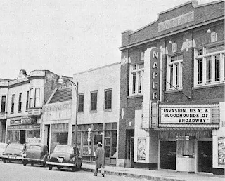 The Grand operated from 1917 until 1931 when it closed down, perhaps due to the aftermath of 1929’s crash. In 1935, however, the space was enlarged by incorporating the street-side shops and updated to seat 480 patrons. Outside, it was dressed up with a fancy sign and marquee and renamed the Naper Theatre.