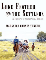 Peg was frequently invited to schools, churches and other community groups to give her presentations on early Naperville history. She made her own costumes and wrote her own scripts for the three personalities she spoke as: Hannah Ditzler, Almeda Naper and Lone Feather, a composite character representing the original inhabitants of the area.